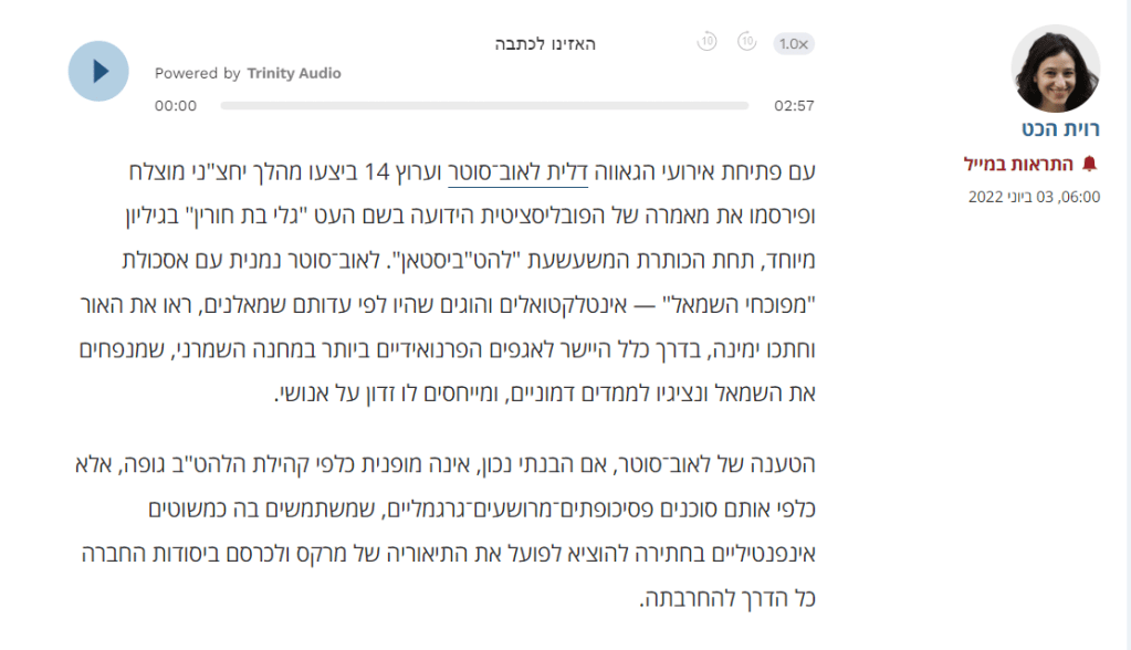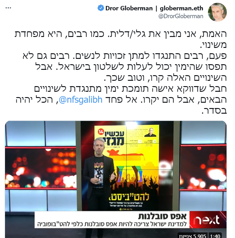 ומנגד – כלי תקשורת אחרים ניסו באמת להקשיב ולהבין – מאלו שפחות דחוף להם להגן על ארגונים מתוך אג'נדה רדיקלית ויותר חשוב להם לברר שמא להטבים אולי באמת מנוצלים – או – האם האג'נדה באמת מסוכנת לילדים של כולנו
