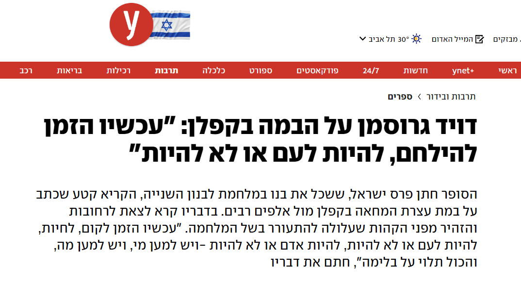 האם אין בכך כדי להסביר את הפער הבלתי נתפס בין גרוסמן הגאון הספרותי בעל הנשמה היתרה – וגרוסמן האיש הפוליטי – ששנאתו היוקדת ל"ימין" מתסכלת תמידית את קוראיו ומעריציו במחנה הלאומי והדתי?